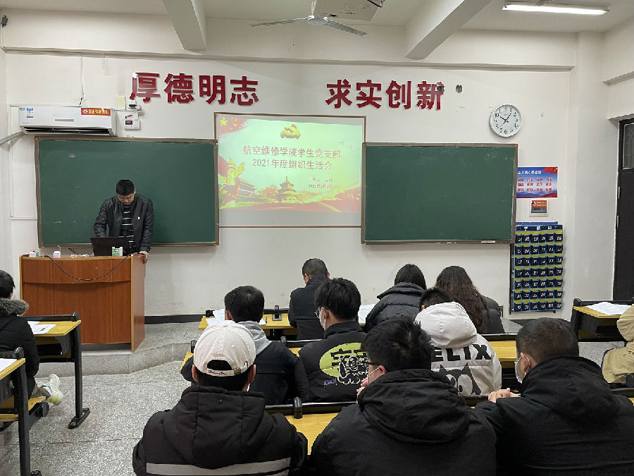 3月3日上午,航空维修学院学生党支部全体党员在教学楼3-208召开了2021年度组织生活会,会议由马闯老师主持,航空维修学院党总支书记谭本军参加会议。